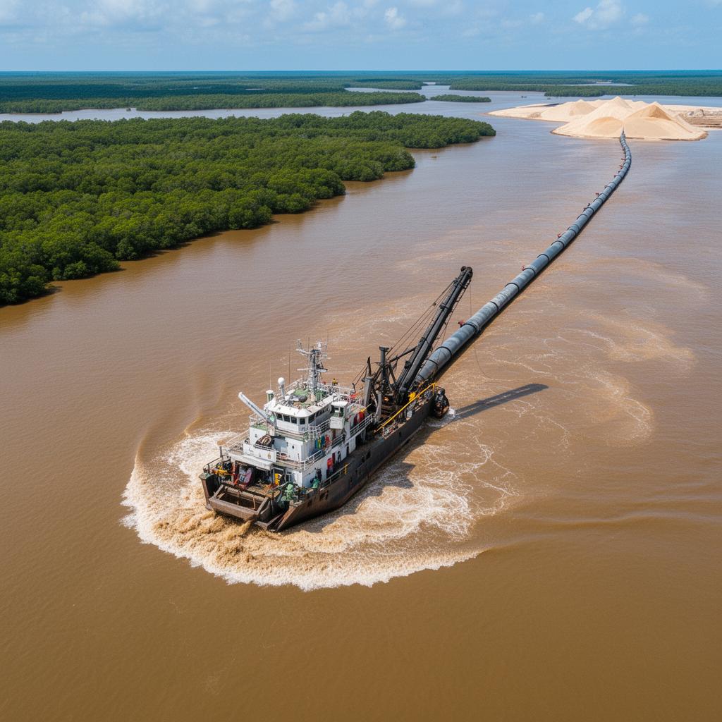 Channel dredging, reclamation, and sand-filling for industrial sites and marine infrastructure.
